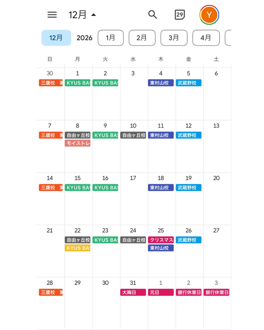 ※変更になる可能性あり 12月24日水曜日 自由が丘校 場所:自由ヶ丘学園高校