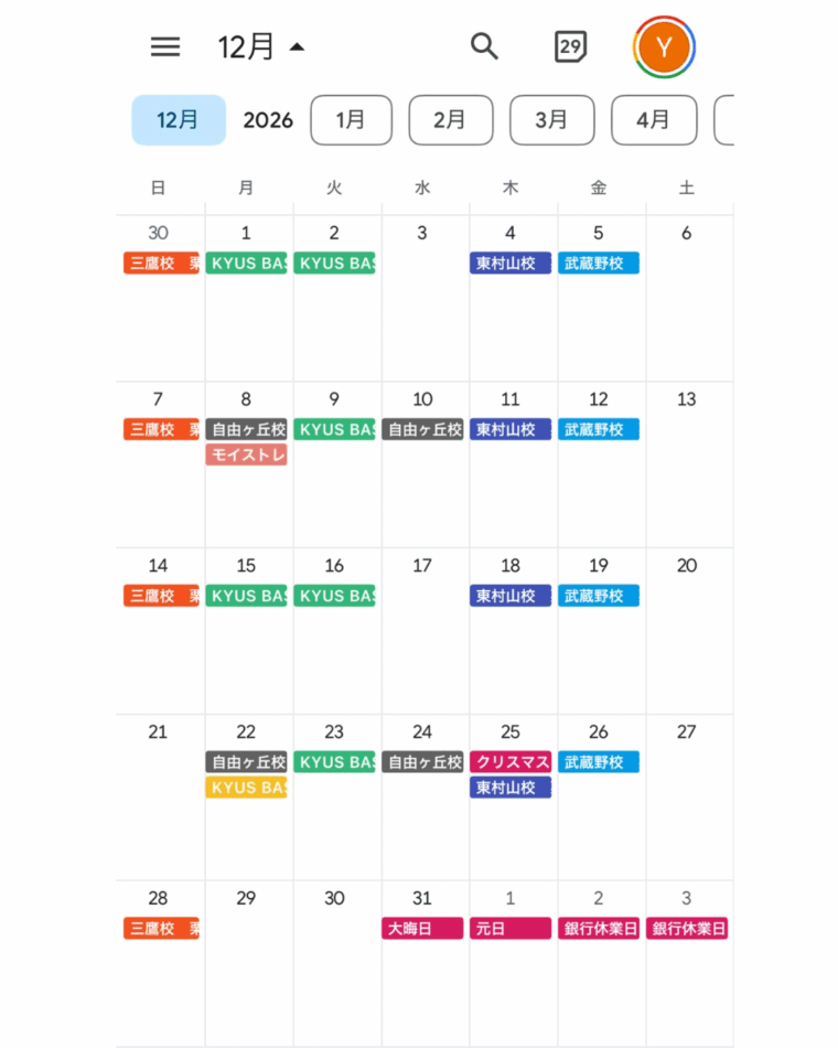 【12月のスケジュール予定】